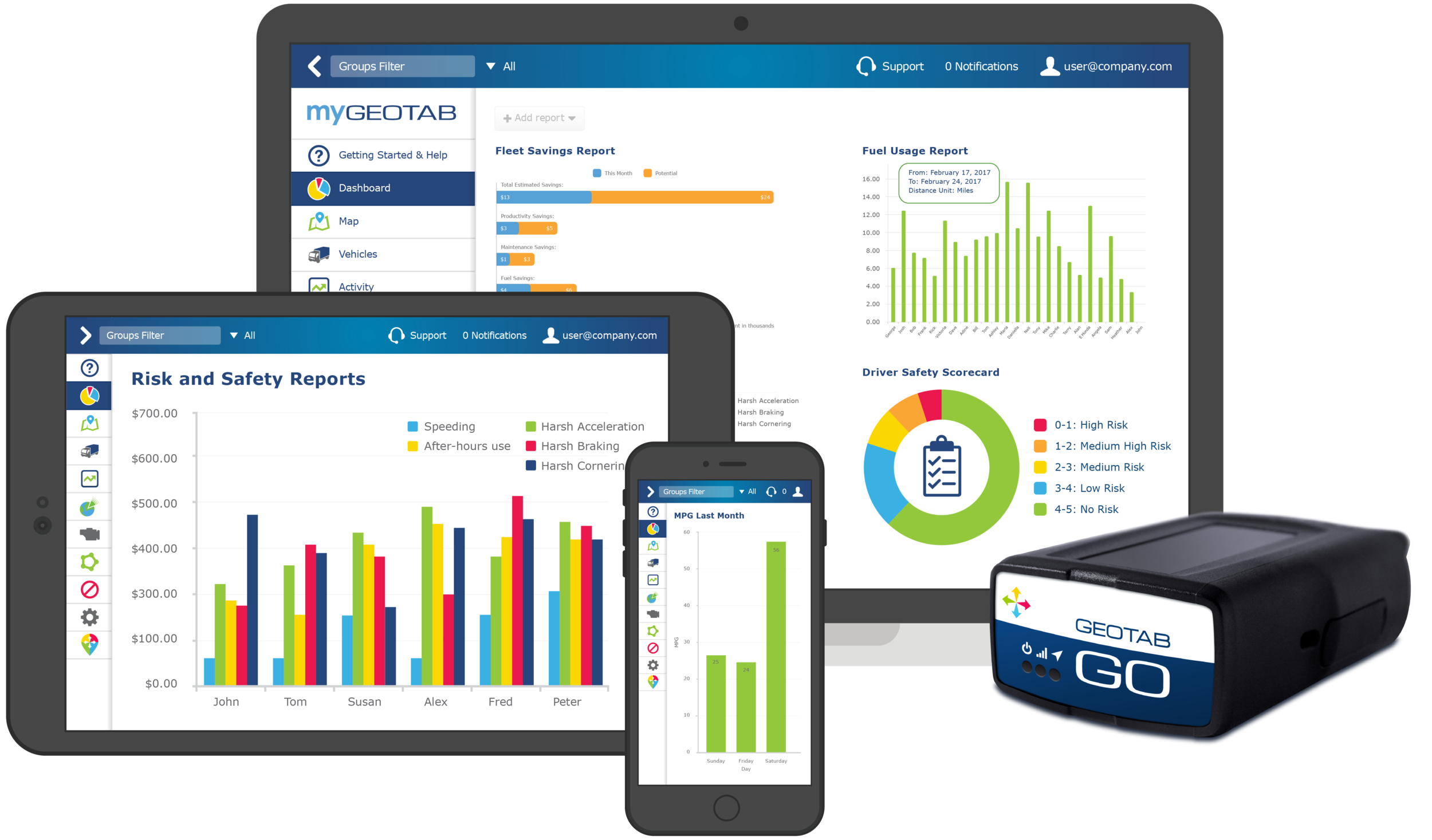 Geotab’s fleet management software, MyGeoTab, takes the complexity out of collecting data and transforms it into useful information that businesses can act on.